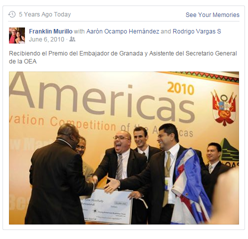 Hace 5 años ganamos Ticamericas (el concurso de emprendimiento más importante de la región), en 2 categorías y mi mundo entero dio un giro total. Ese momento se convirtió en uno de los puntos de inflexión más importantes de mi vida, principalmente por las decisiones que me llevó a tomar. Hoy 5 años después de aquel evento, en mi vida ya hay cambios importantes. Salí de mi zona de confort principal: mi antiguo trabajo de profesor; no sólo terminé mi bachillerato universitario (que era mi pega) sino que además estudié 3 maestrías, cambié de profesión y formación, y eso me ha dado la oportunidad de liderar una de las ONG más importantes y estratégicas -qu amo con el corazón- en el sector educativo del país: Fundación Gente. Además cambié de círculo de amigos y network, he tenido la oportunidad de trabajar en proyectos nacionales e internacionales y representar a CR en foros mundiales. Pero de lo más significativo -y creo que lo más importante-, ha sido que dejé de pensar en estabilidad y comodidad tradicional y busqué ser parte de iniciativas que generan un impacto positivo y propicien mejoras estructurales a nivel nacional e internacional, aprendí lo rico que es rodearse de líderes en diferentes áreas, tener la oportunidad de aprender y saber que estaba a su nivel; empecé a viajar, innovar, soñar y confiar que podía cambiar el mundo con mis dos pasiones: educación y emprendimiento. En fin, sin conformarme, creo que he avanzado. Hoy, con la nostalgia que me dio Facebook al recordármelo (¡gracias Facebook!)
