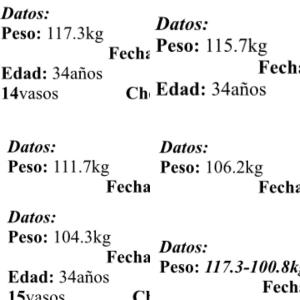 - Peso: En 6 meses, he perdido aproximadamente 100 libras, eso es de 126.4 kilos a 83.6 kilos. Espero poder seguir bajando un poco más.